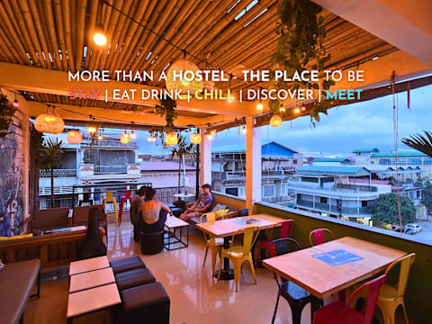 The place hostel & rooftop bar is the original hostel in battambang, geopend in 2017 met een werkelijk uniek ontwerp en gelegen in het centrum van de stad. Het biedt een comfortabele en sociale ervaring, zodat u zich meteen thuis voelt! Onze ruime slaapzalen en kamers met airconditioning zijn voorzi...