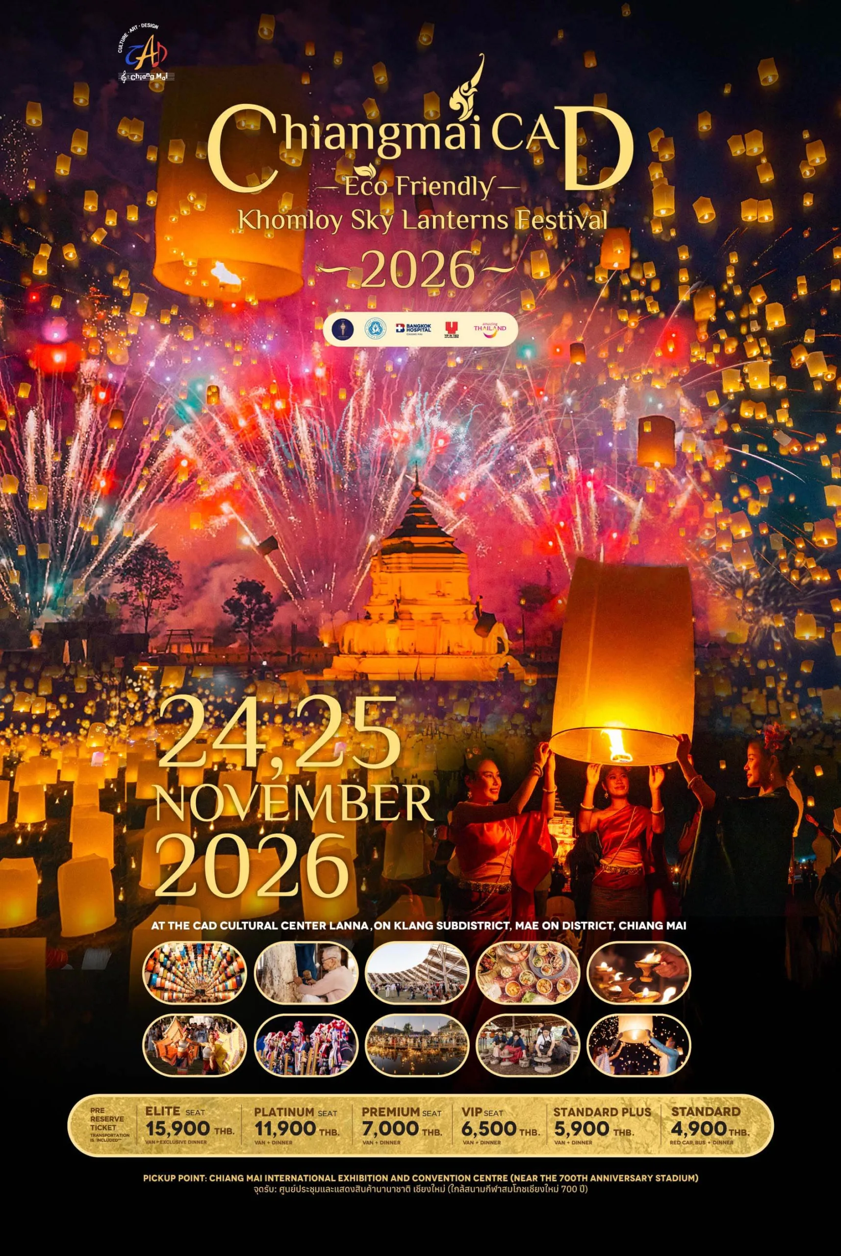 CAD (Cultural Authority of Thailand) organiseert jaarlijks hét grootste sky lantern-evenement met een mass release van luchtlanterns, Lanna-culturele shows, traditionele dans, eten, ceremonies. Dit het is het grootste en populairste evenement. Er komen zo’n 15.000 mensen, maar tickets zijn vaak ruim van tevoren uitverkocht.